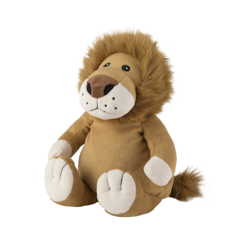 Ein wildes Tier zum Kuscheln ist unser Löwe mit samtig weichem Fell und imposanter Mähne. Er ist ca. 30 cm hoch und wiegt etwa 750 g. Statt laut zu Brüllen schmiegt er sich wärmend in alle Kinderarme und wird so auch zum König der Kuscheltiere.