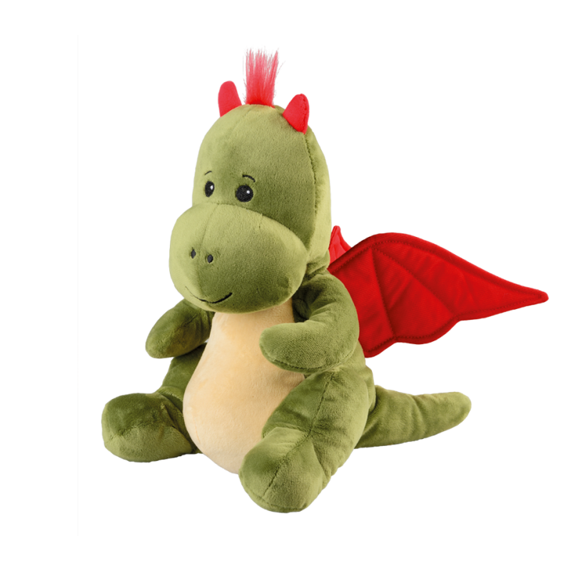 Drachen sind aus der Mythologie nicht mehr wegzudenken. Dieser niedliche Geselle ist alles andere als furchterregend. Er liebt es, sich in die Arme von großen und kleinen Sagen- und Märchenfans zu kuscheln. Der freche Drache ist etwa 28 cm hoch und wiegt etwa 780 g.