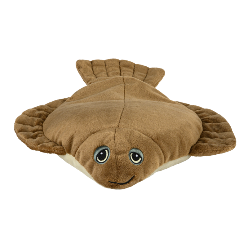 Sie mag es außergewöhnlich und extravagant - daher bevorzugt sie auch das Leben an Land statt im Meer. Sie lächelt Dir am liebsten schief ins Gesicht, wenn sie ganz platt auf Deinem Bauch liegen darf. Dank ihrer zweckdienlichen Körperform schenkt sie Dir so zauberhaft nach Lavendel duftende angenehme Wärme. Die freundliche Scholle ist etwa 32 cm lang und wiegt etwa 670 g.